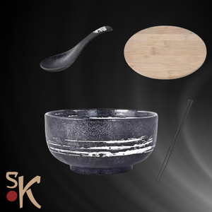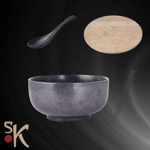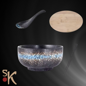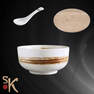 Ceramic Noodle Soup Bowl with Lid, Chopsticks & Spoon