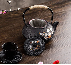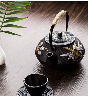 Enhance your tea experience with this beautiful Plum and Bamboo Painted Cast Iron Tea Pot. Order now and enjoy every moment of your tea ceremony!