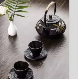 This elegant 700ml cast iron tea pot features a stunning plum and bamboo design, combining traditional craftsmanship with artistic flair. The high-quality cast iron ensures superior heat retention, while the integrated strainer makes it easy to brew loose leaf tea without any mess. Ideal for tea lovers who appreciate both beauty and functionality in their tea ware.