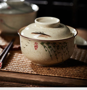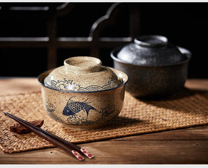 Retro Ceramic Ramen Bowl & Pot With Lid