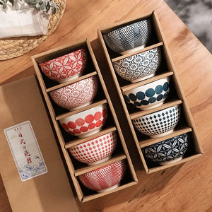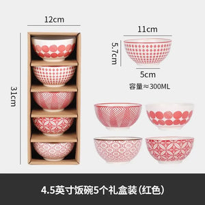 Rice Bowl Family Gift Set - Ceramic Red | Blue