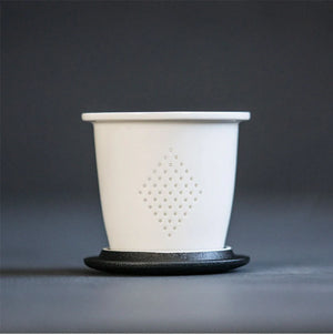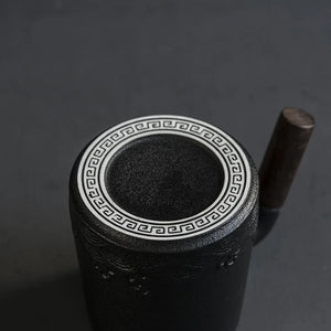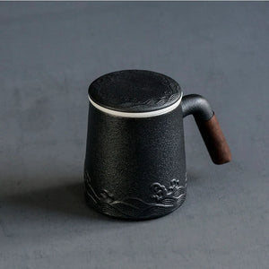 Tea Infuser Ceramic Mug with Lid & Wood Handle Gift Set - Black